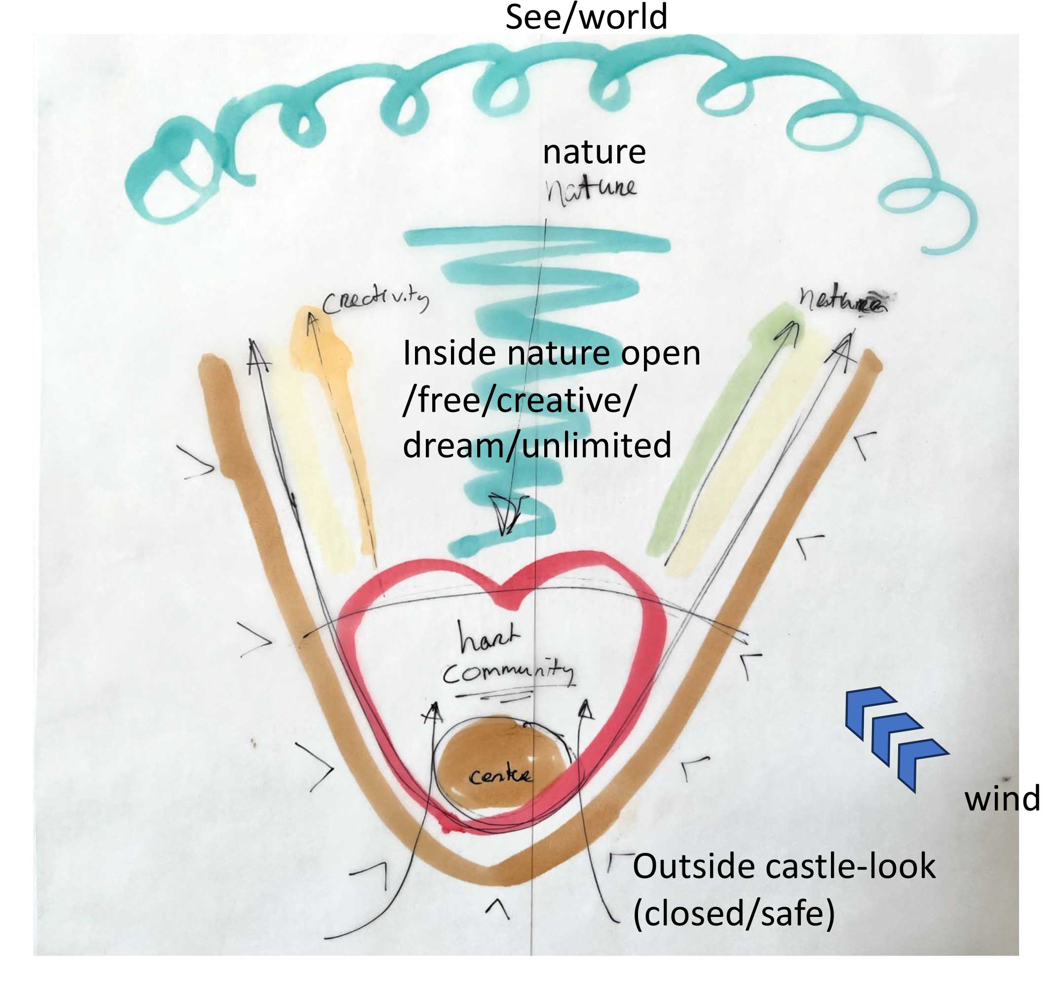 De leerlingen komen uit de beschermde omgeving van een basisschool en groeien naar het leven van een volwassenen. Met de bescherming van kasteelmuren in de rug richten de jongeren zich op wat de natuur van God hen in deze wereld te bieden heeft en biedt hen zo kansen om sterkt te staan in het leven met God aan hun zijde.