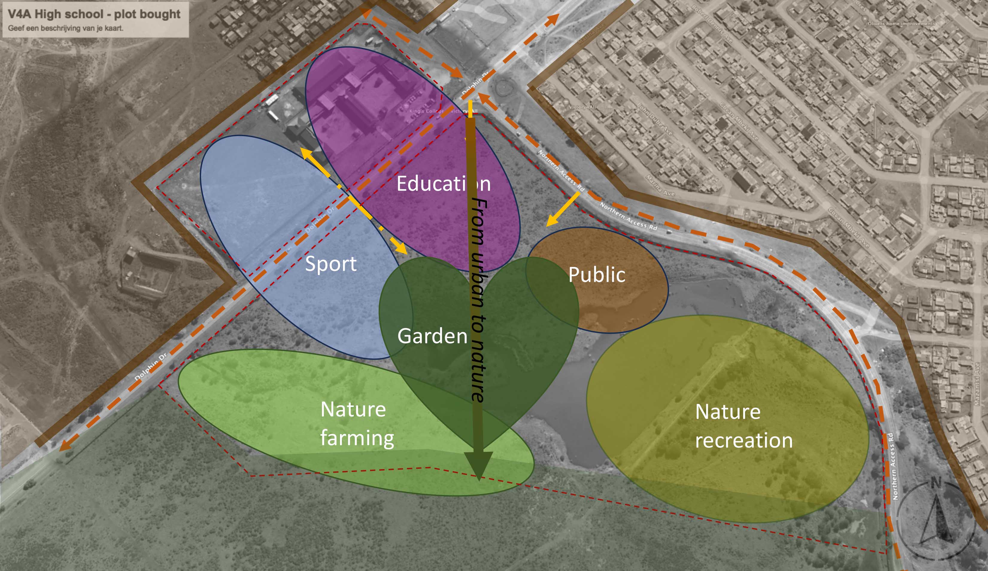 Het gebouw opent zich op een compacte wijze met een kern en twee armen naar de natuur. Met een centrale hal en centrale voorzieningen in de kern en lokalen in de armen ontstaan er omsloten ruimtes welke de jongeren beschermen van de buitenwereld en de harde Zuid Afrikaanse wind.