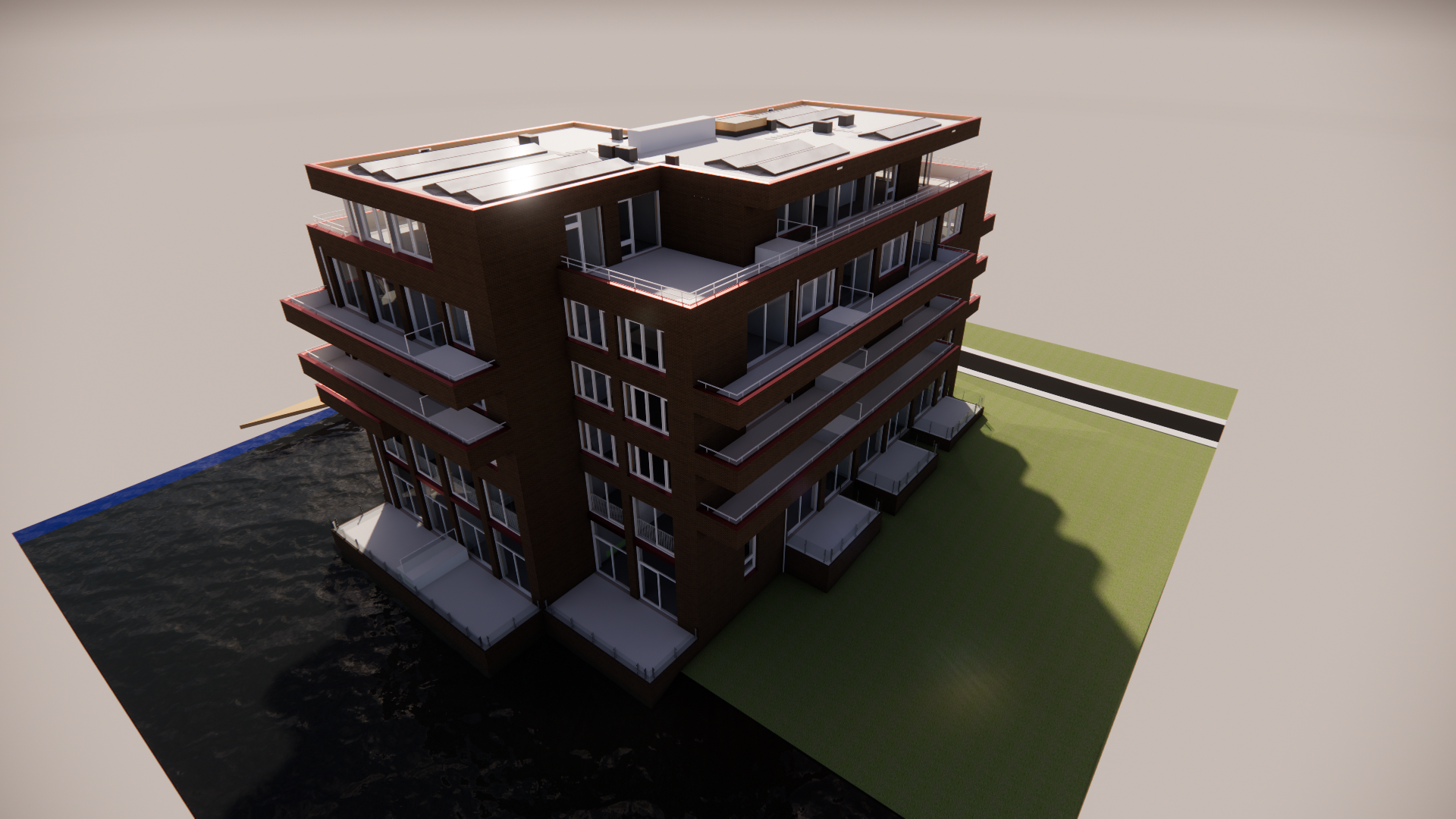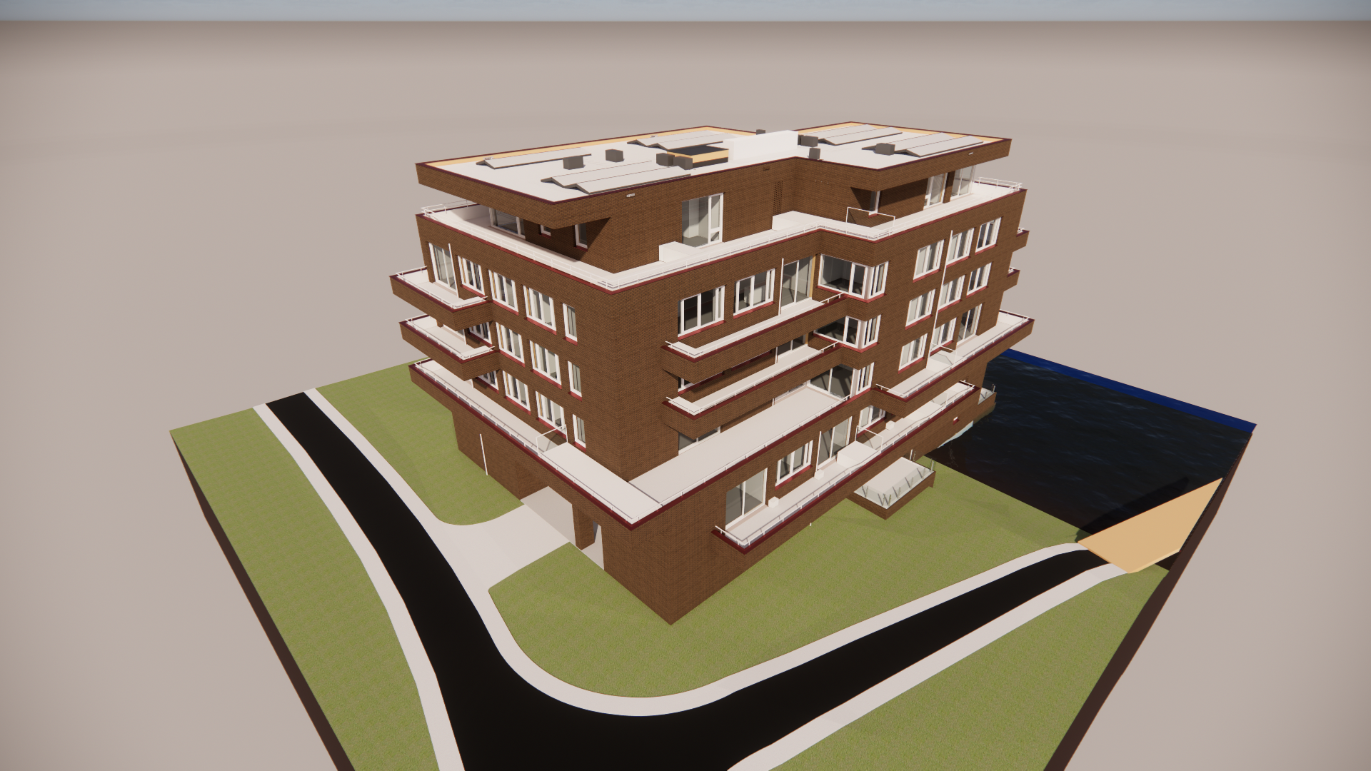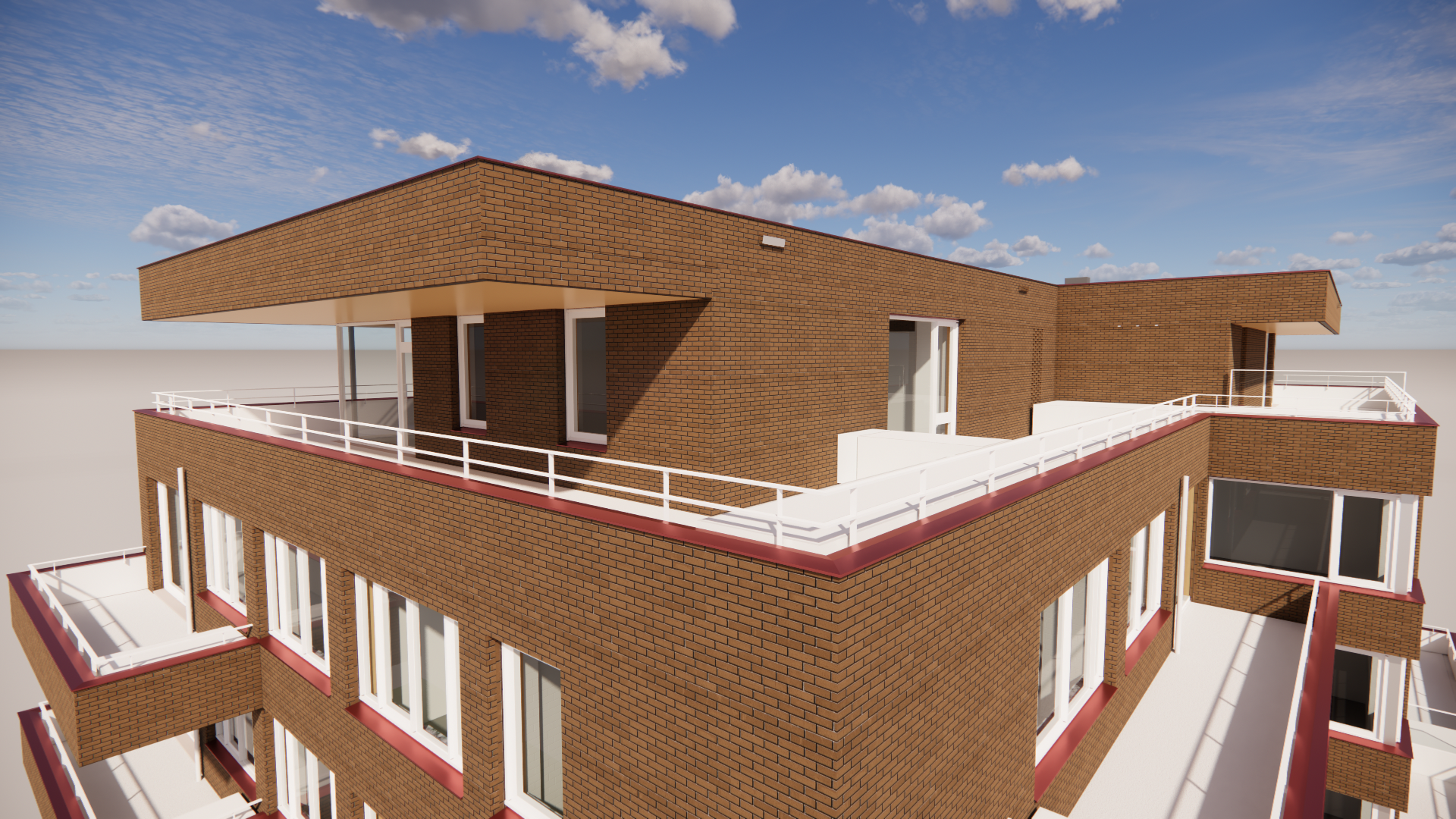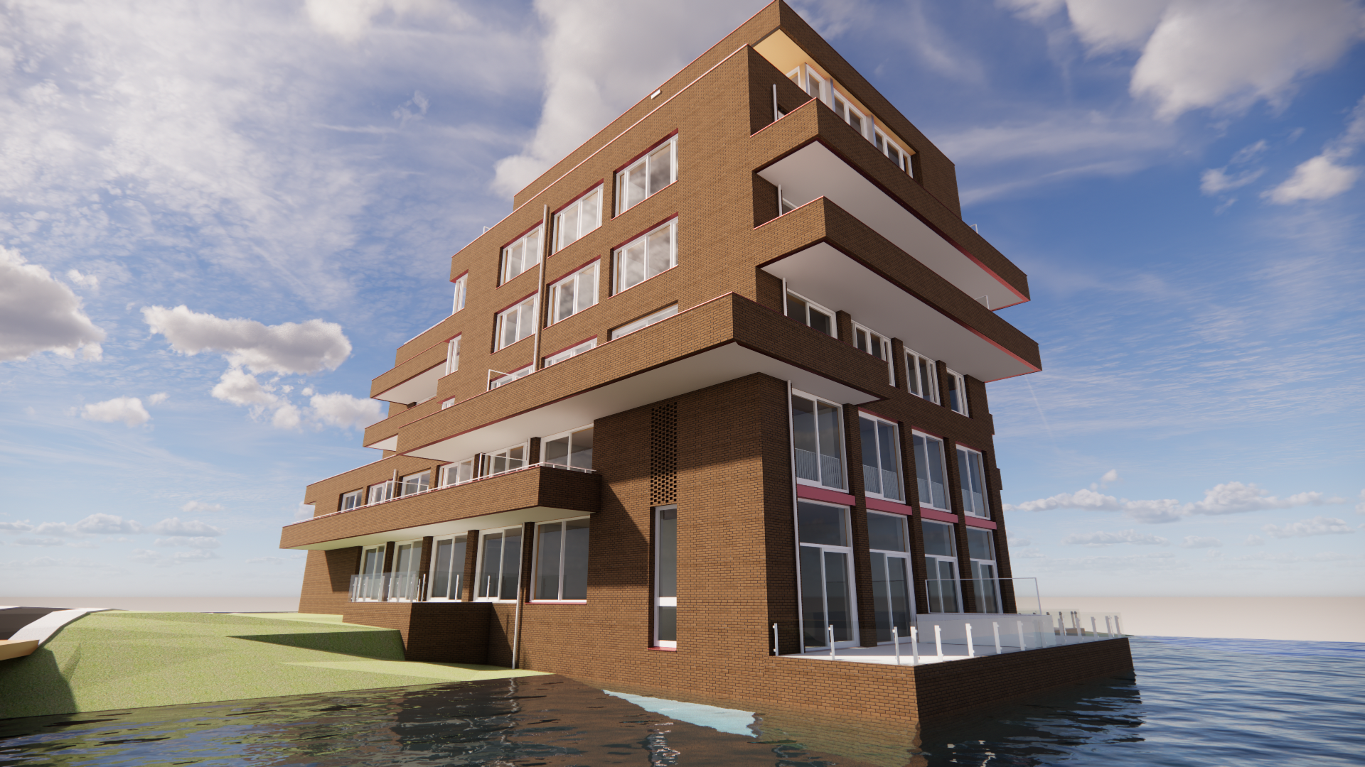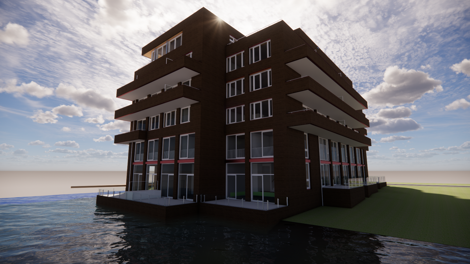 RU bouwdesign heeft het VO ontwerp in Revit BIM uitgewerkt. Het ontwerp kent op beganegrond niveau twee niveaus en de woningen hebben hier twee bouwlagen. Op alle overige bouwlagen hebben de appartementen één bouwlaag. De bovenste bouwlaag kent twee penthouse appartementen. Hoewel de tekenopdracht op DO niveau was, is de uitwerking bijna op TO niveau uitgewerkt.