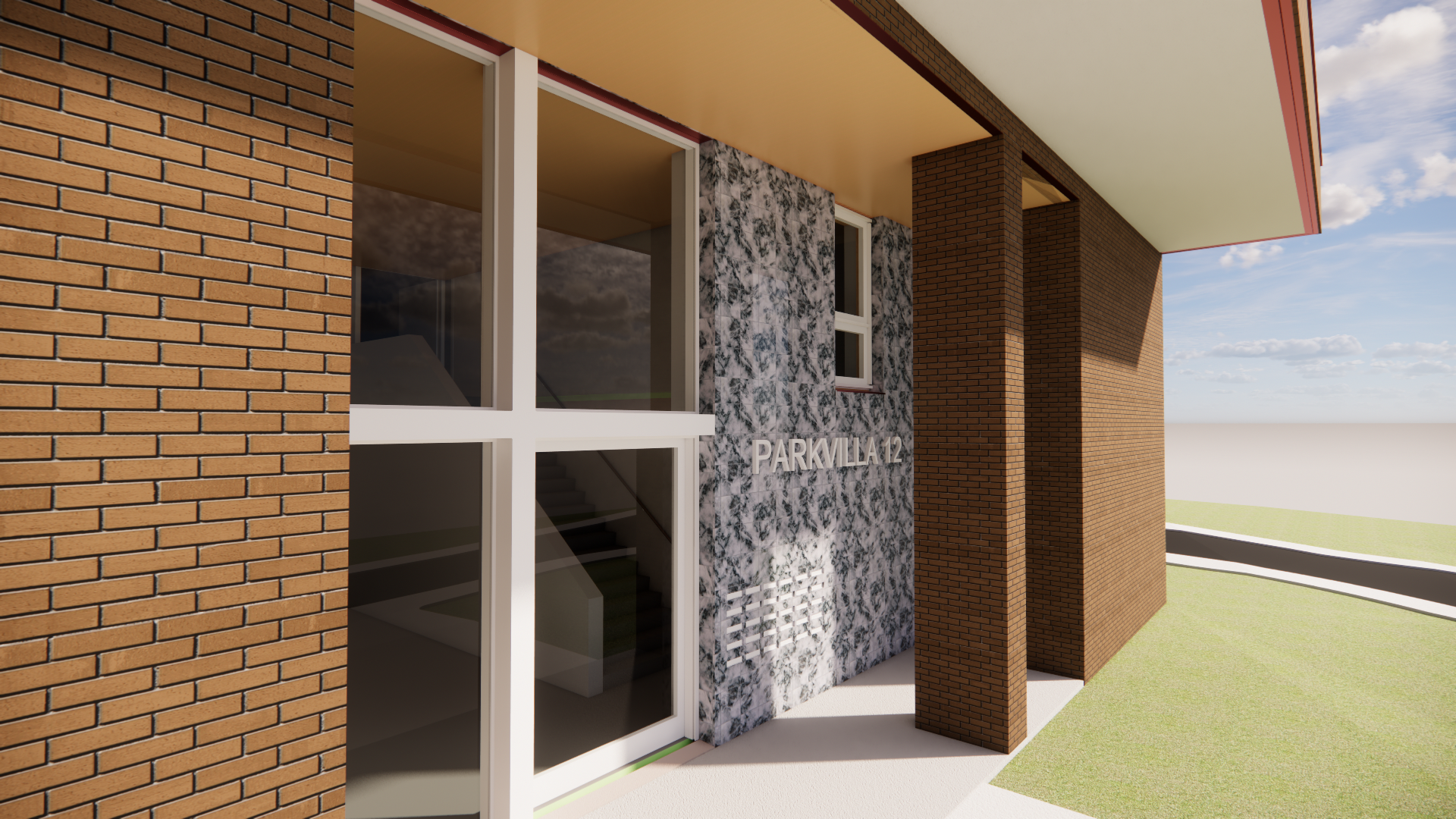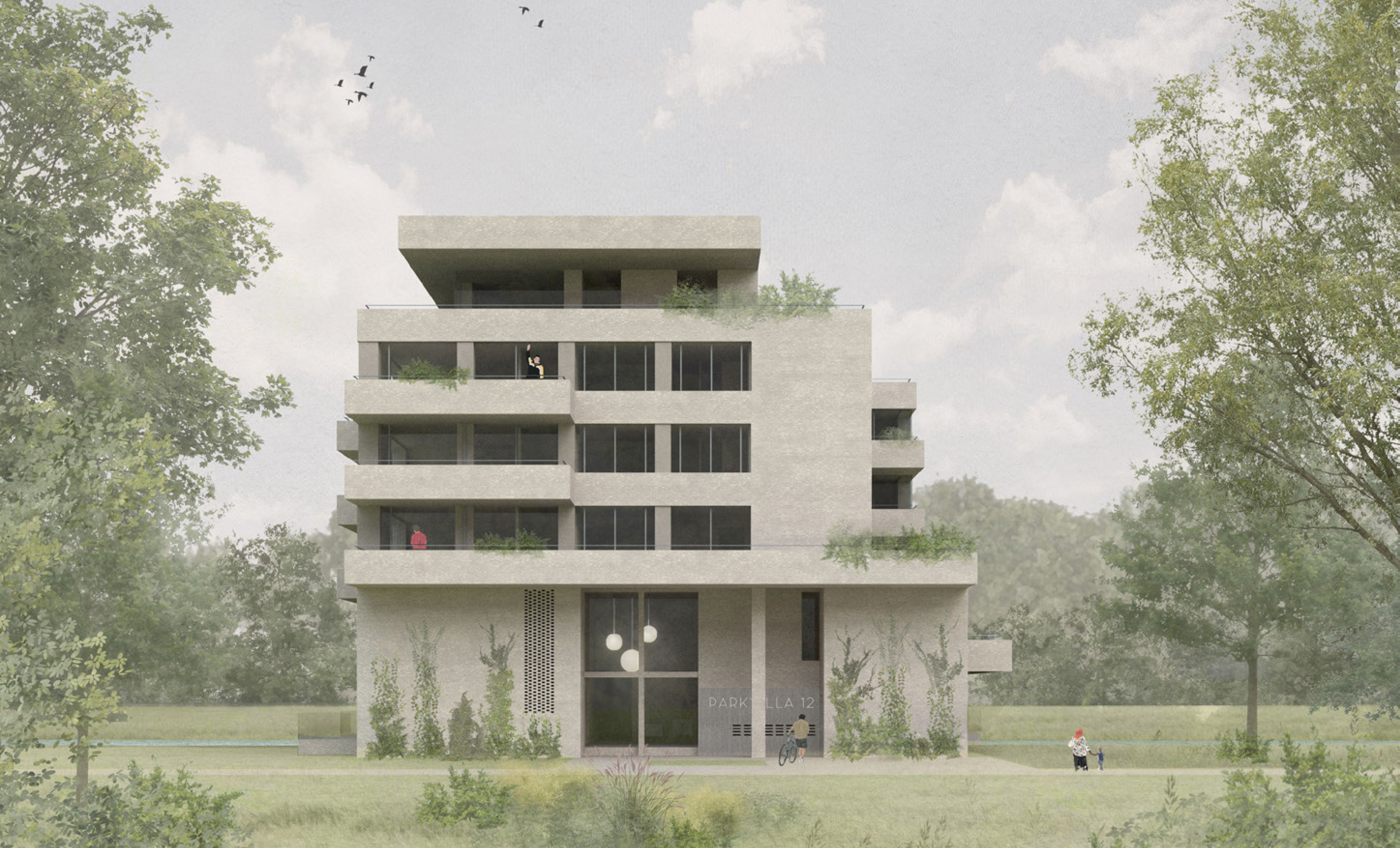 In een openbaar, parkachtig gebied staan de parkvilla's vrij in de ruimte. De begane grond ligt boven het maaiveld uitgetrokken en hebben één hoofdingang. Middels uitsnedes en balkons wordt het verspringende bouwblok vormgegeven. Een deel van de gevels wordt van groen voorzien.