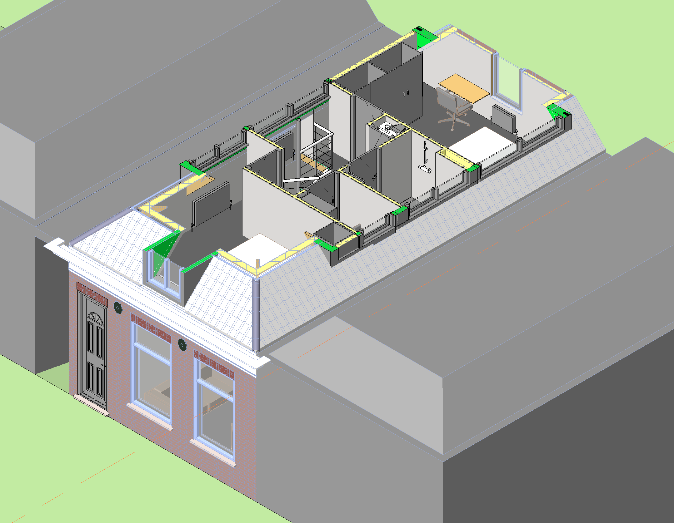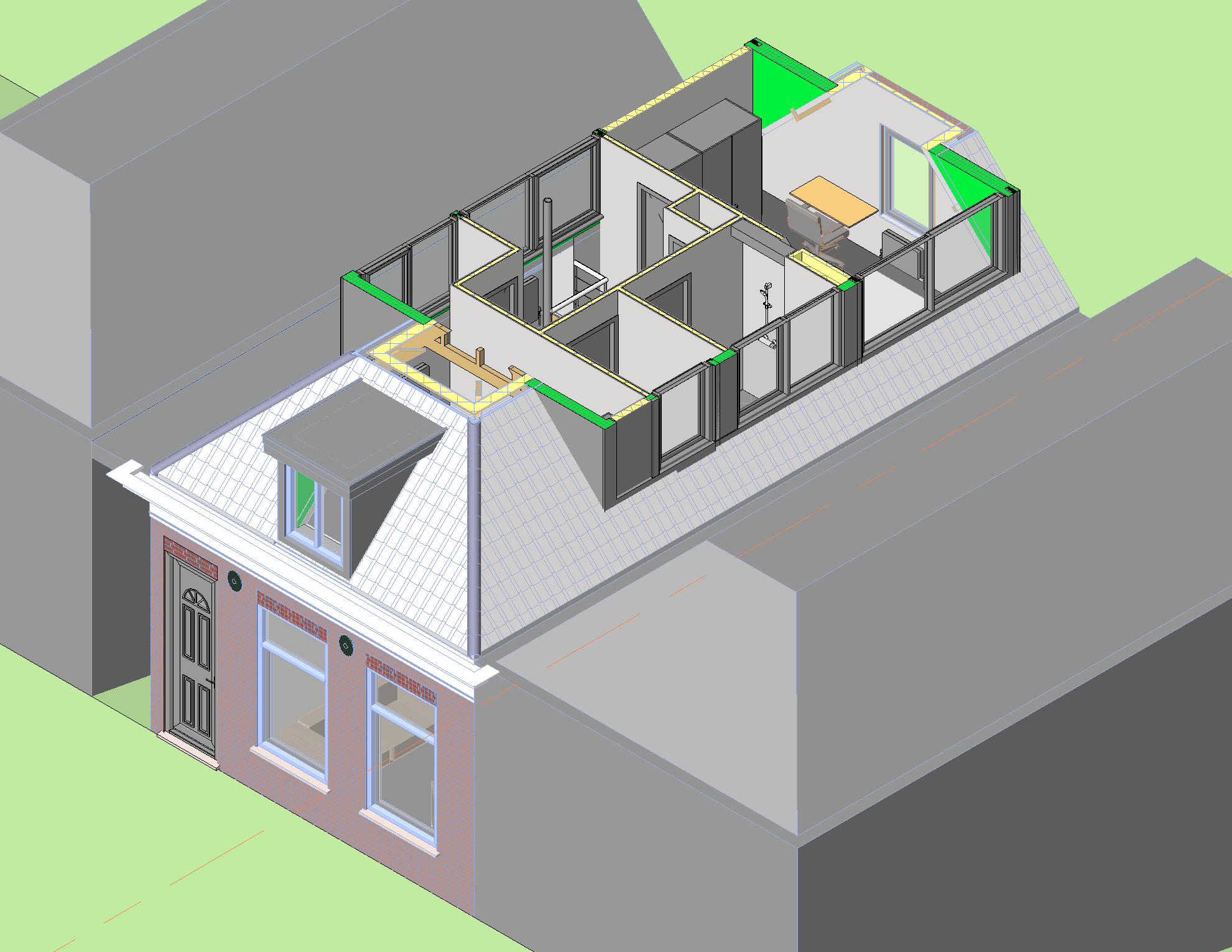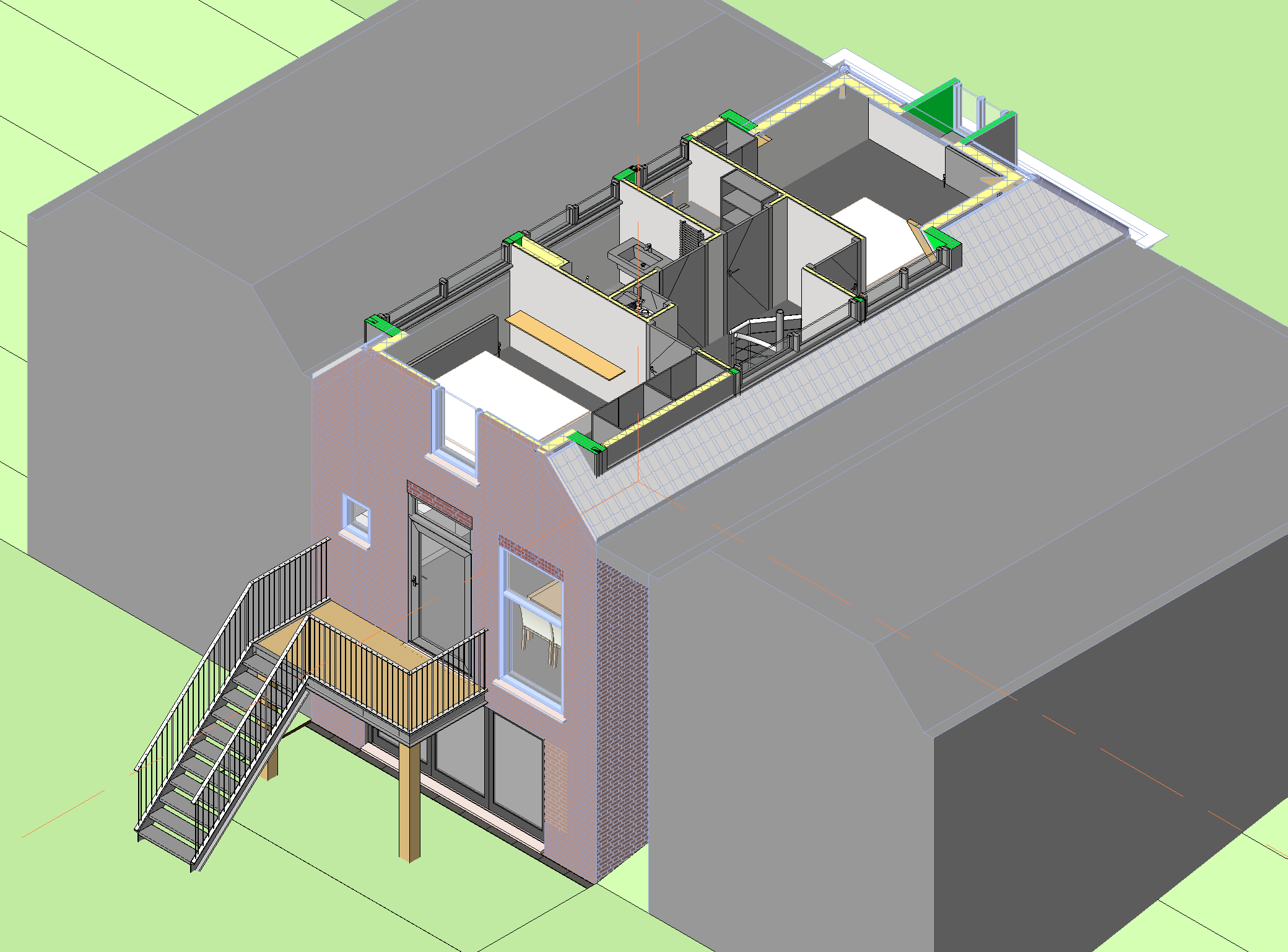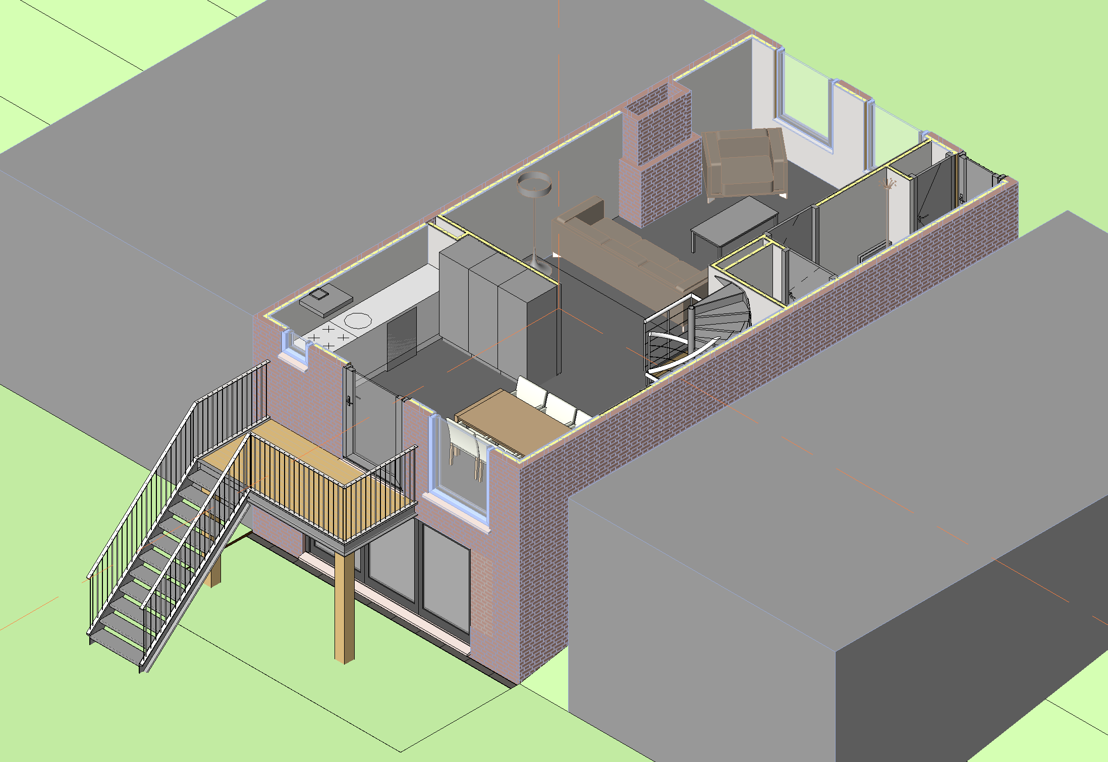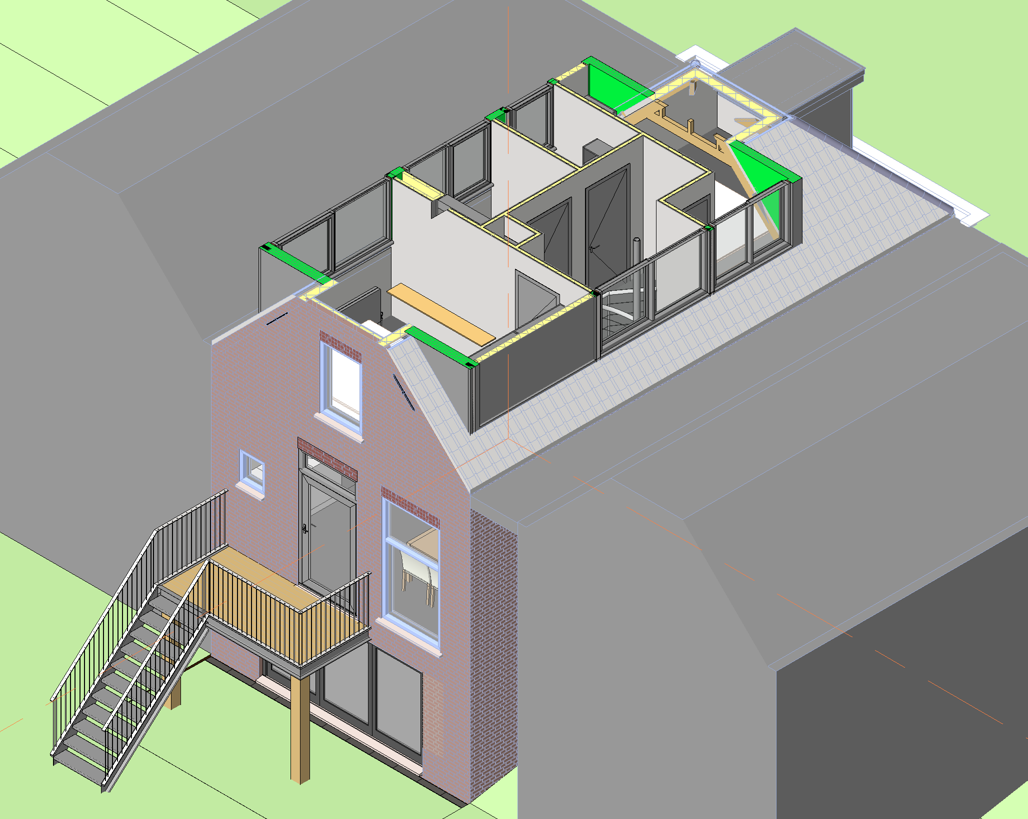 Het ontwerp is uitgewerkt in Revit BIM zodat de aannemer de tekeningen voor de bouw kan gebruiken.