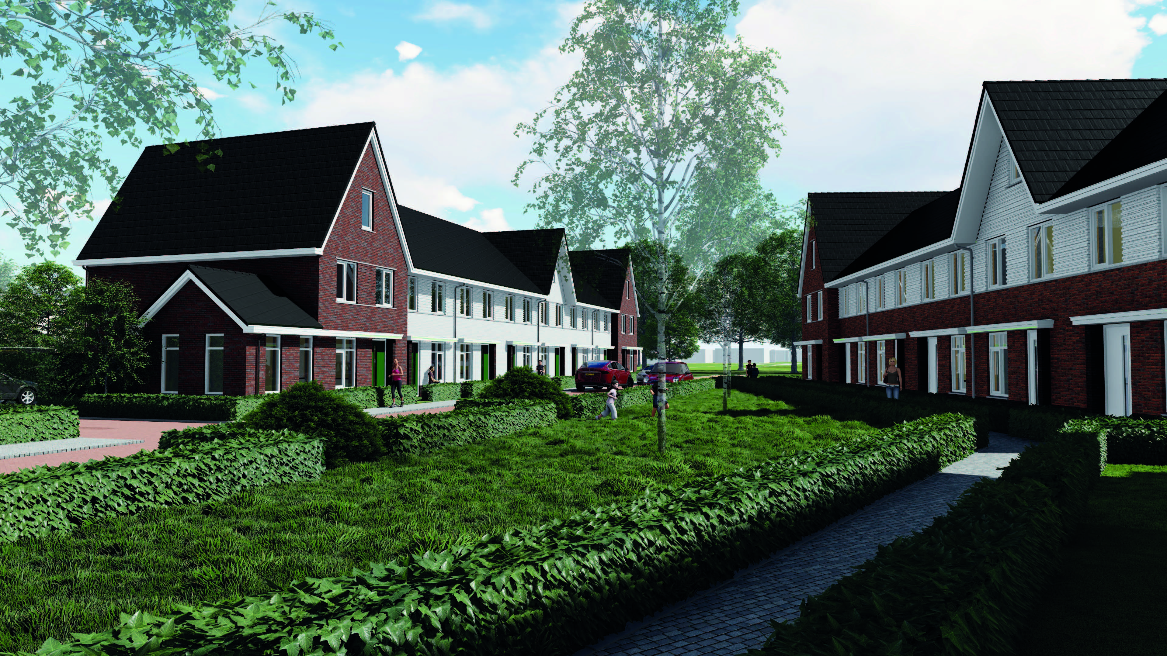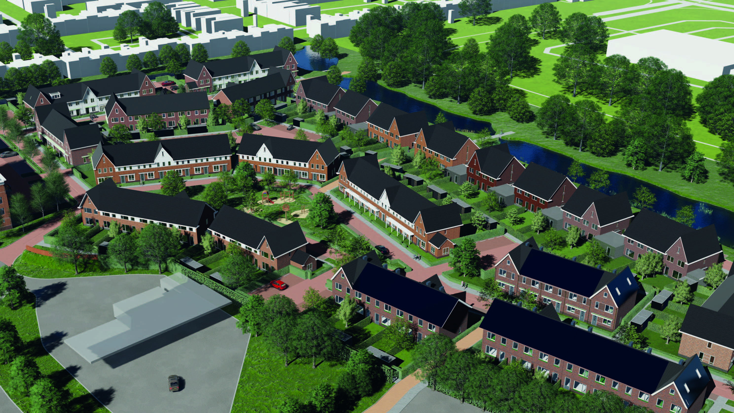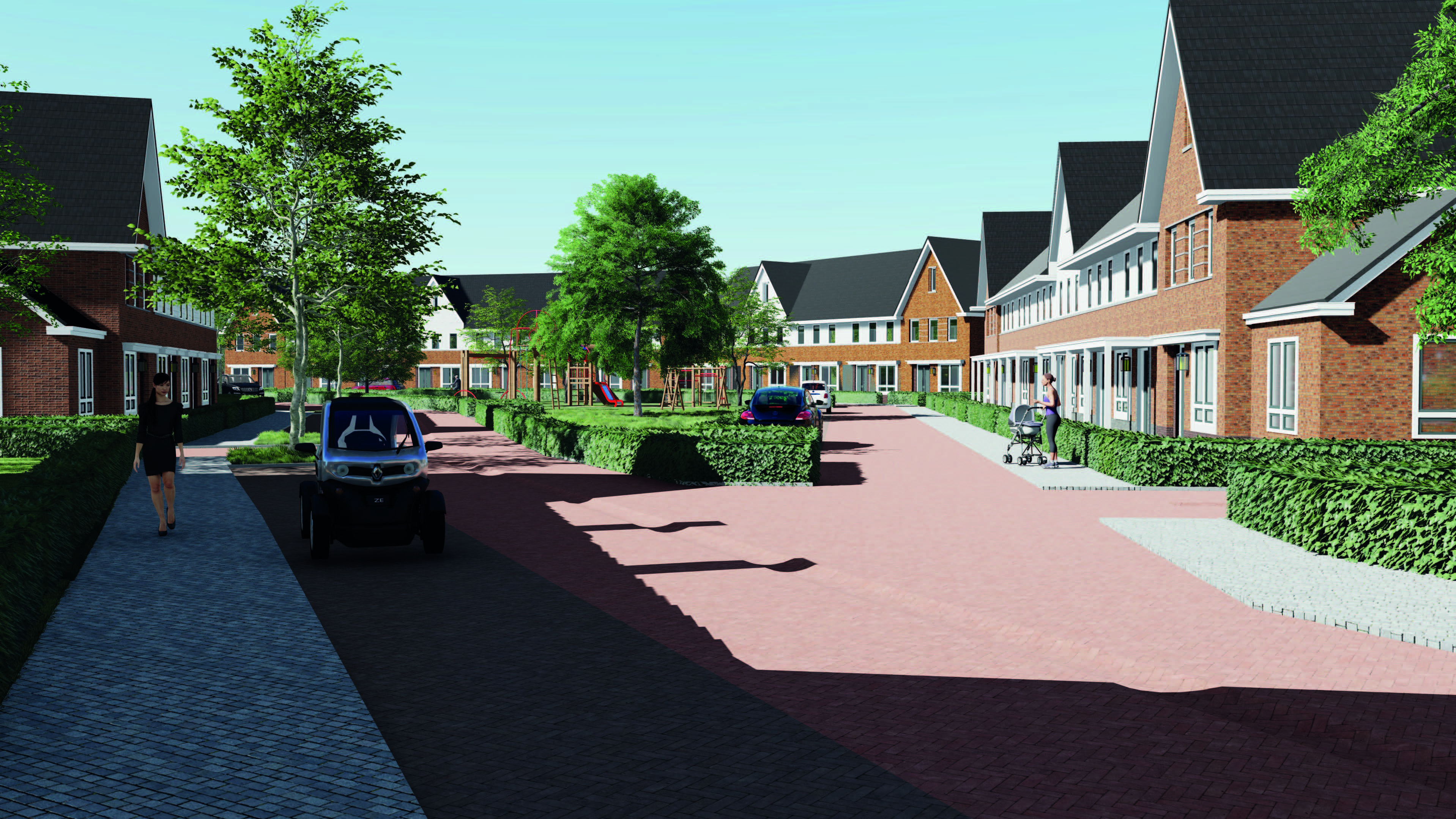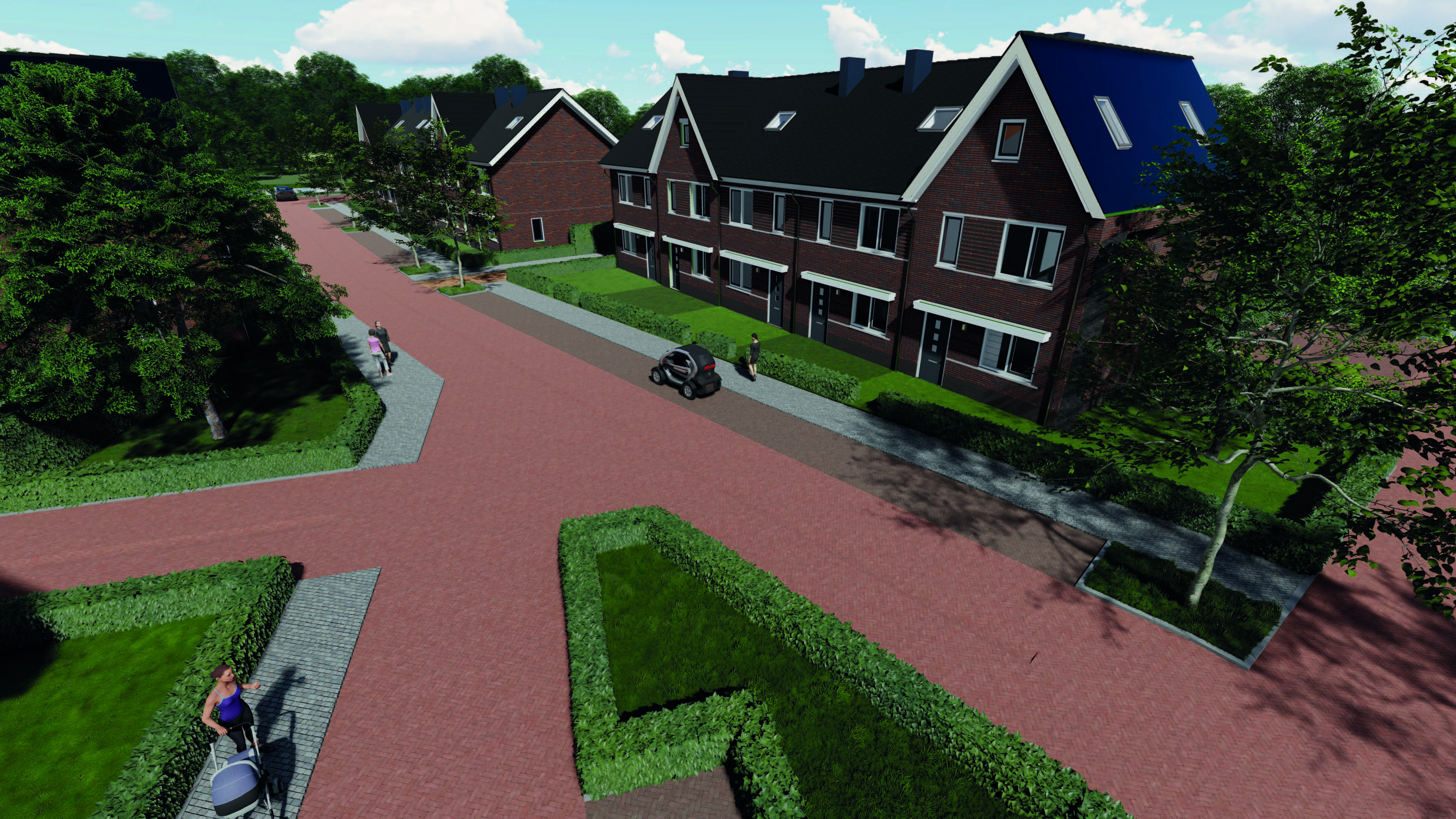 Het plangebied is verdeeld onder twee architecten waarbij 01-10 Architecten 56 woningen heeft ontworpen. Het ontwerp bestaat uit drie ontwerpdelen - Pleinwonen, Tuinwonen en Parkwonen. De verschillenmde ontwerpen hebben een jaren-50 thema met een rijke architectuur met accenten als metselwerk lagen, betondorpels, gootoverstekken, luifels, dwarskappen, erkers en uitbouwen. RU bouwdesign heeft het ontwerp op DO niveau gedetaileerd uitgewerkt in 3D.