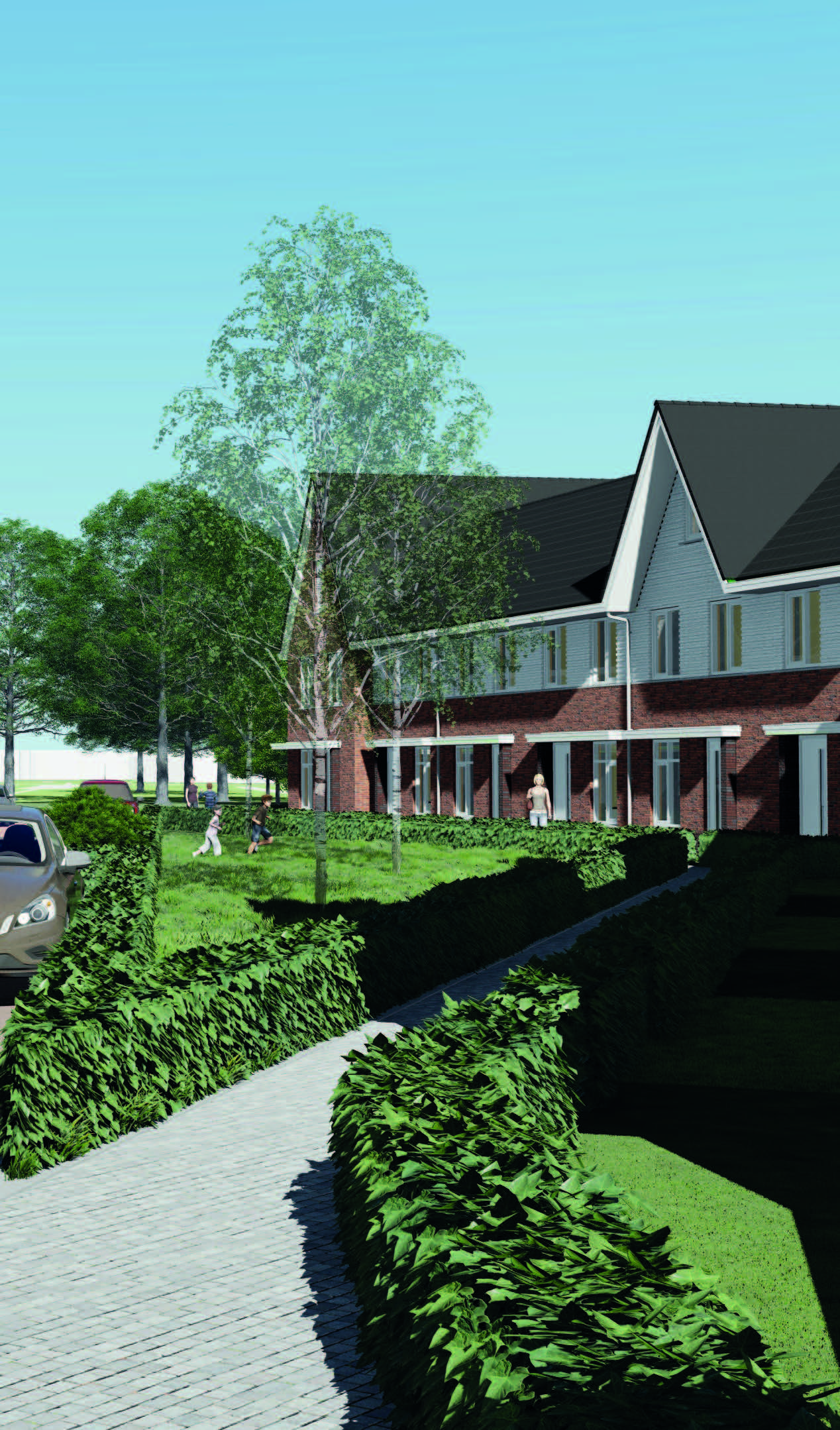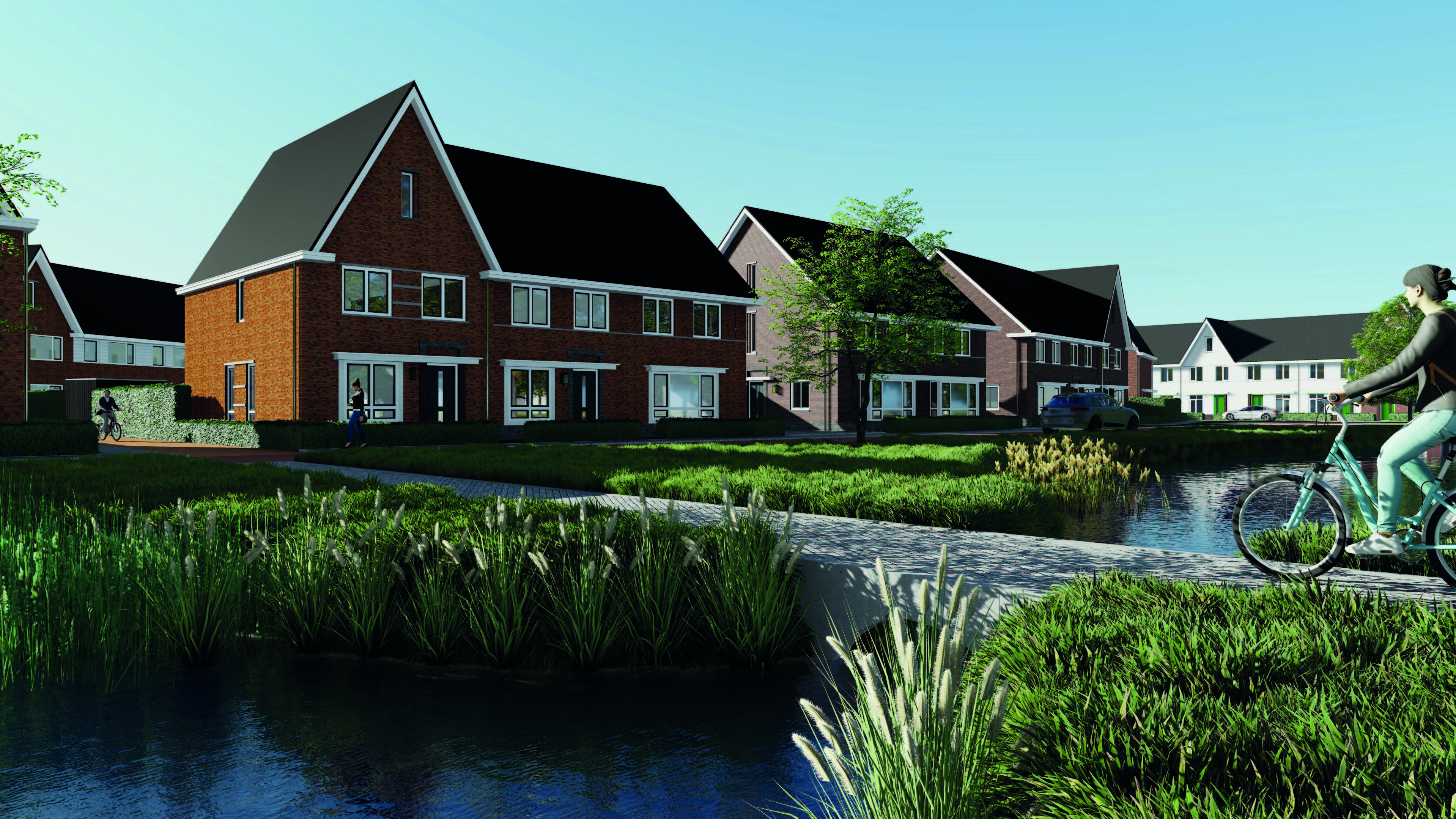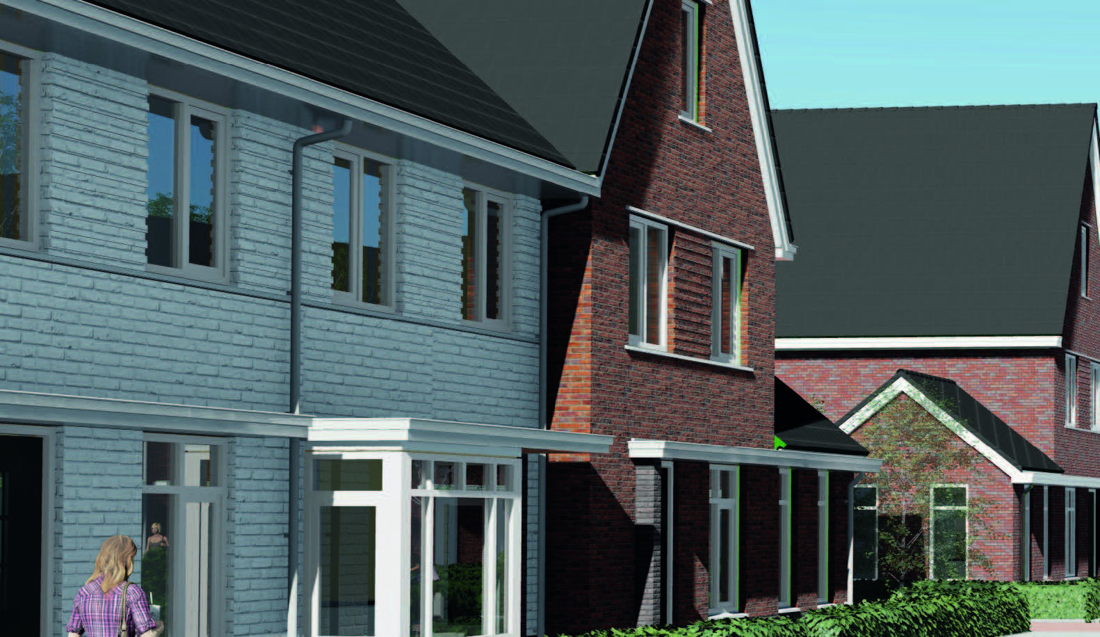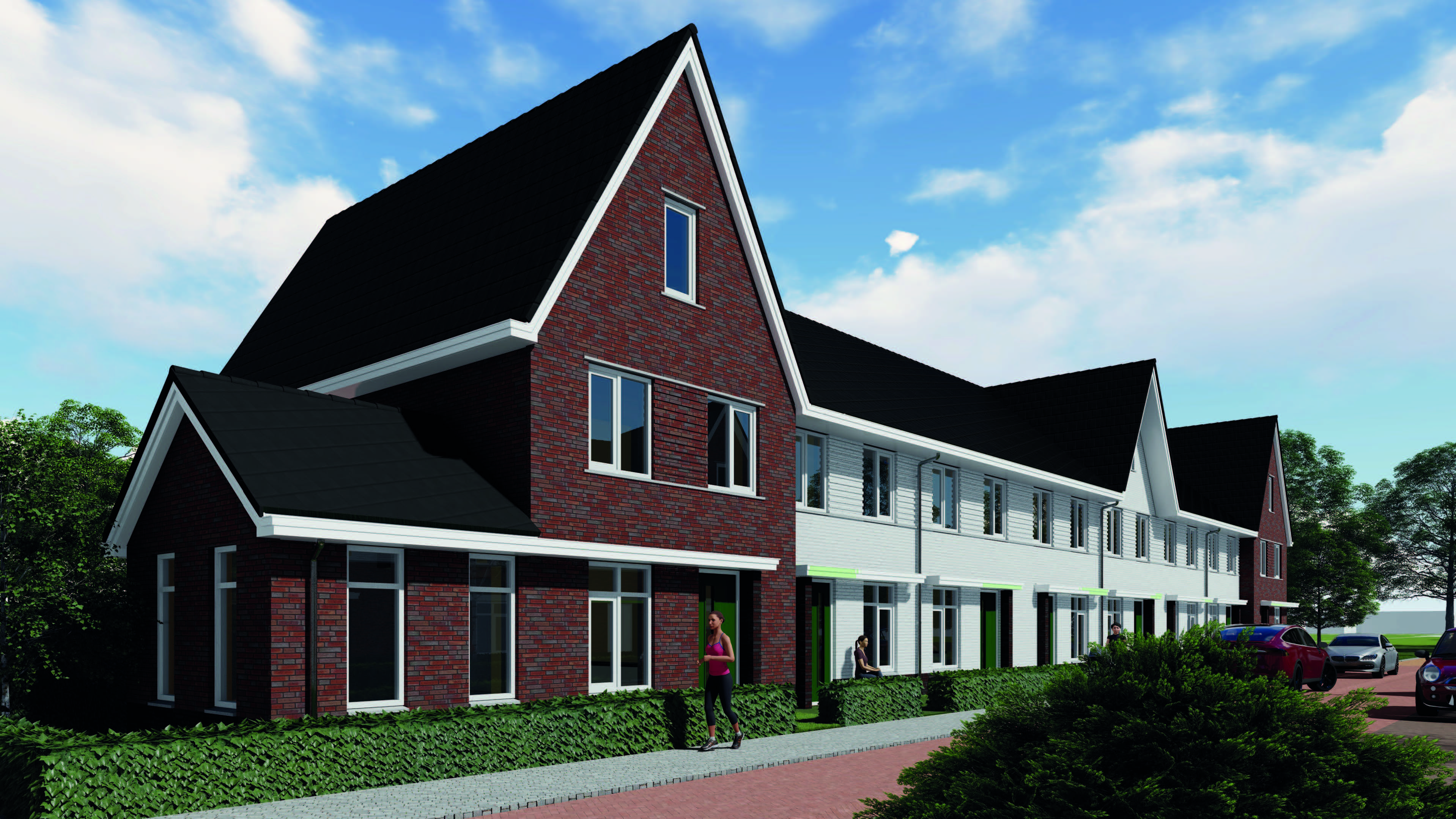 Het plangebied is verdeeld onder twee architecten waarbij 01-10 Architecten 56 woningen heeft ontworpen. Het ontwerp bestaat uit drie ontwerpdelen - Pleinwonen, Tuinwonen en Parkwonen. De verschillenmde ontwerpen hebben een jaren-50 thema met een rijke architectuur met accenten als metselwerk lagen, betondorpels, gootoverstekken, luifels, dwarskappen, erkers en uitbouwen. RU bouwdesign heeft het ontwerp op DO niveau gedetaileerd uitgewerkt in 3D.